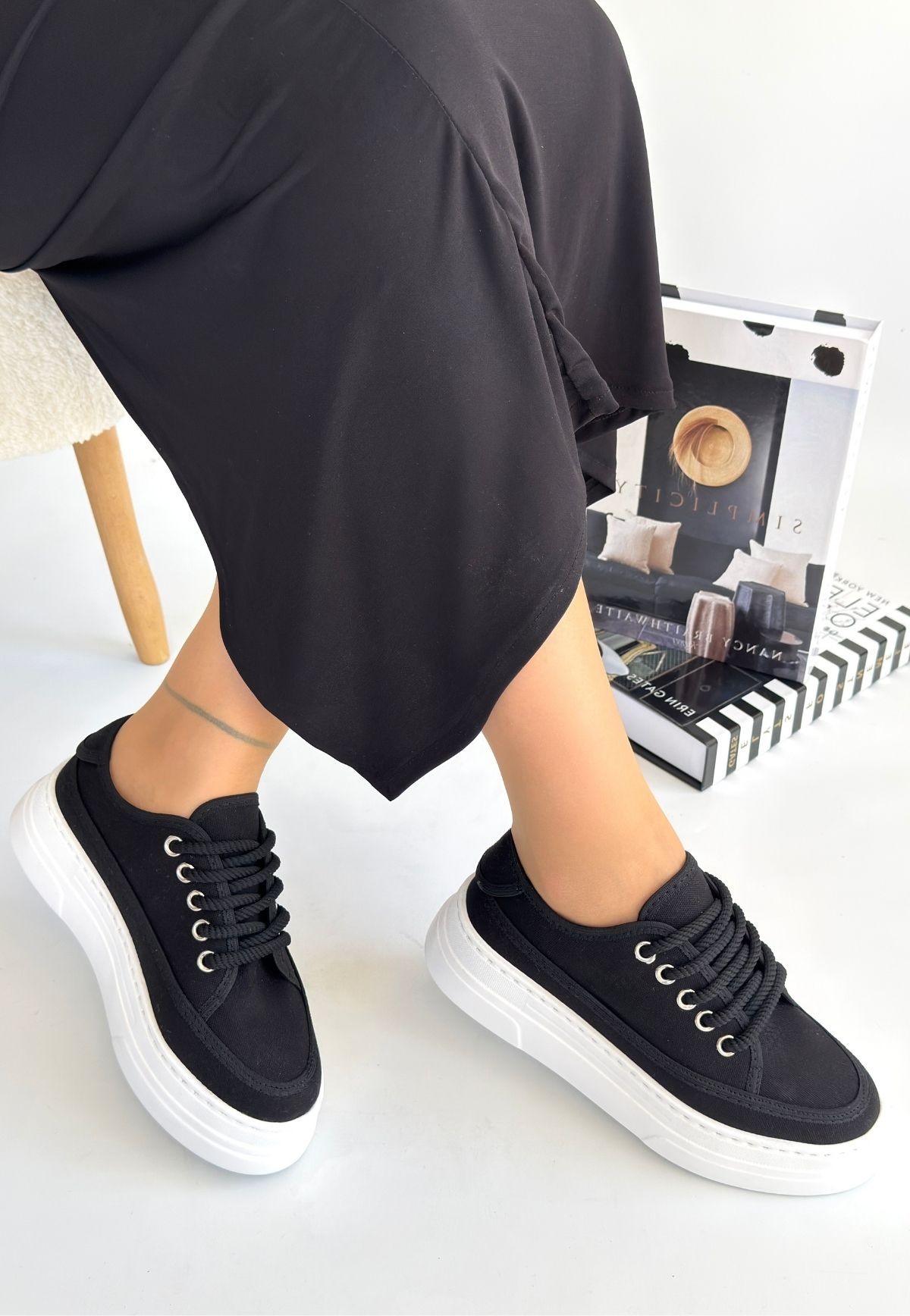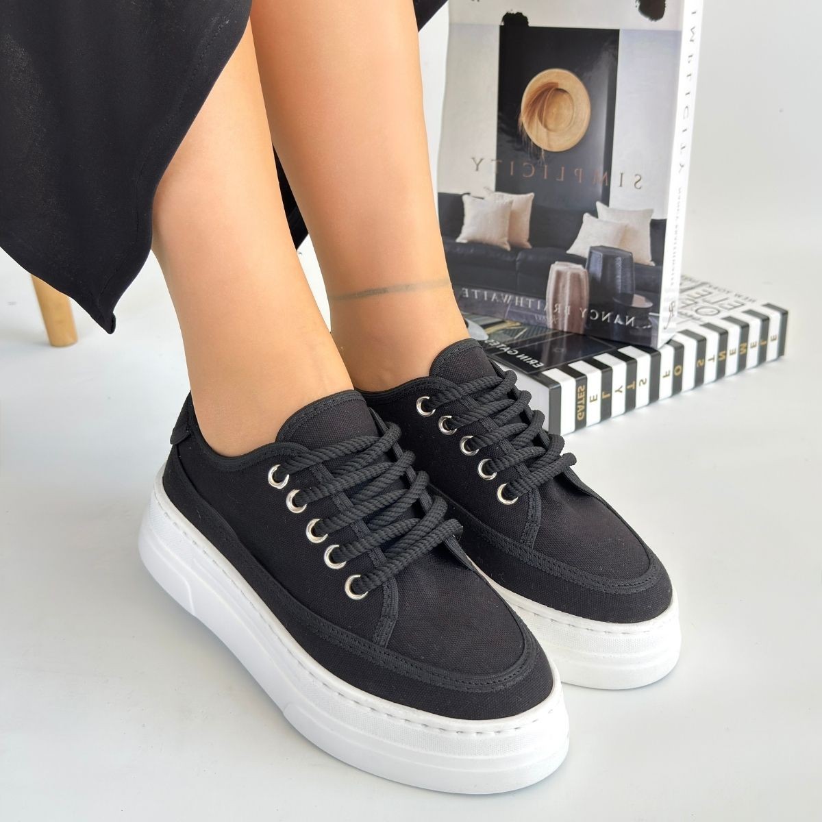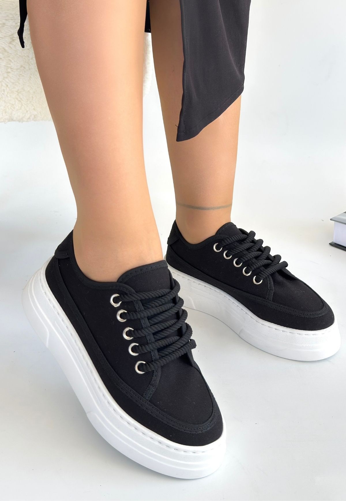 Siyah Keten Bağcıklı Spor Ayakkabı