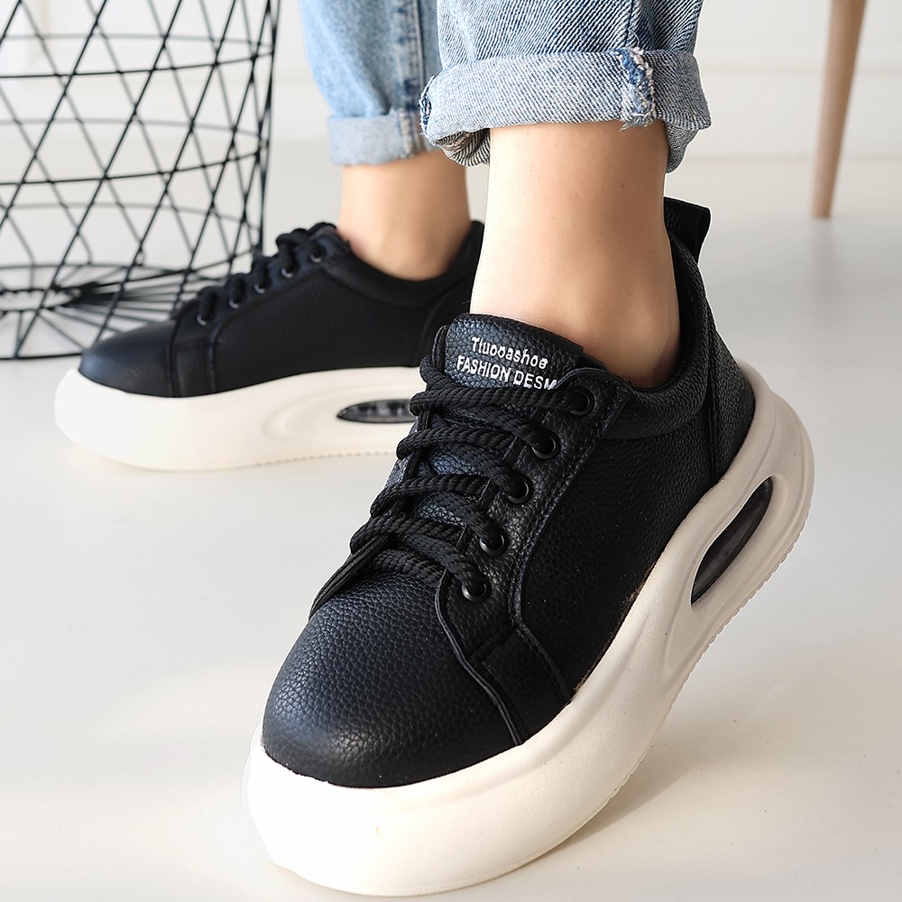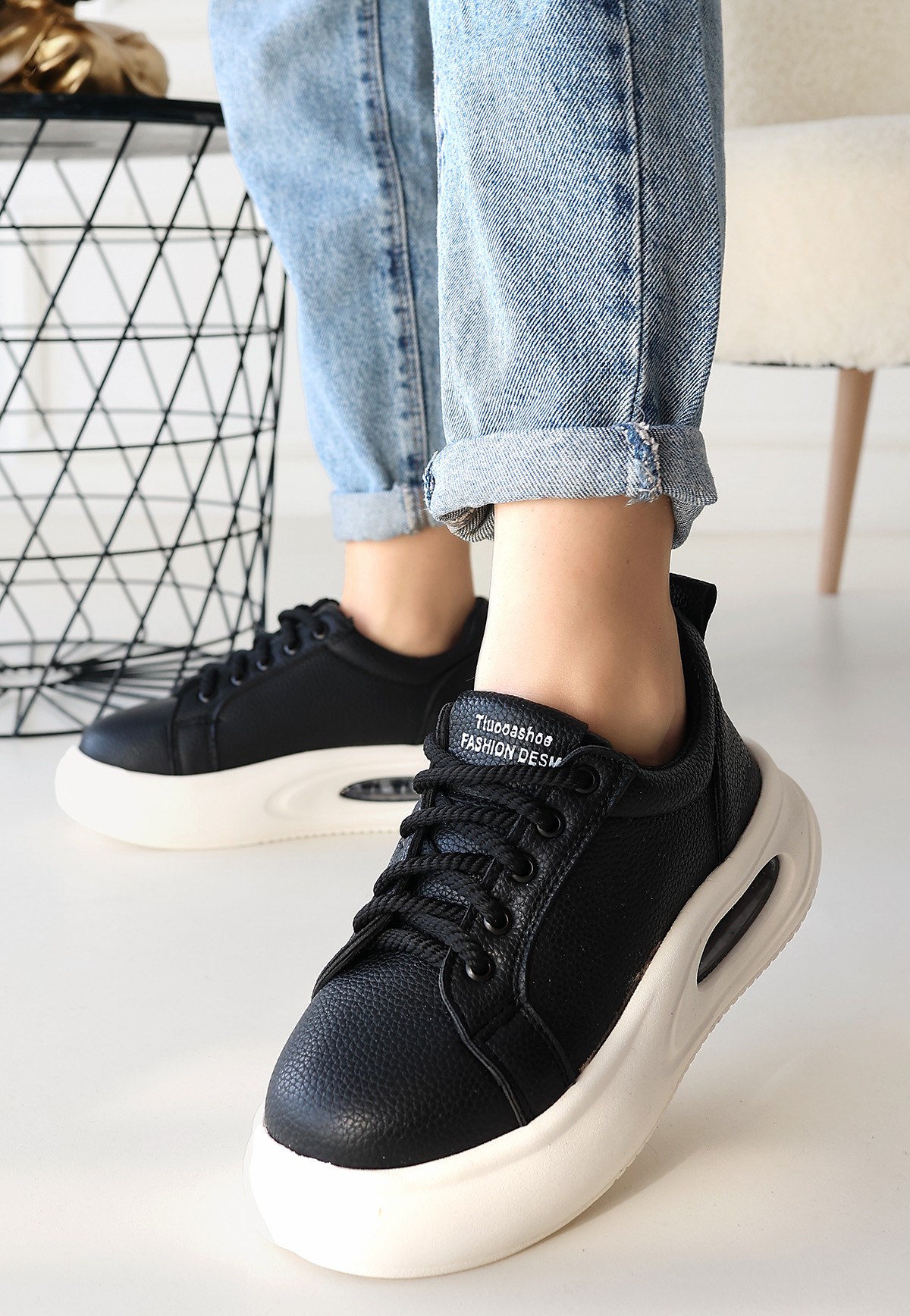 Siyah Cilt Bağcıklı Spor Ayakkabı