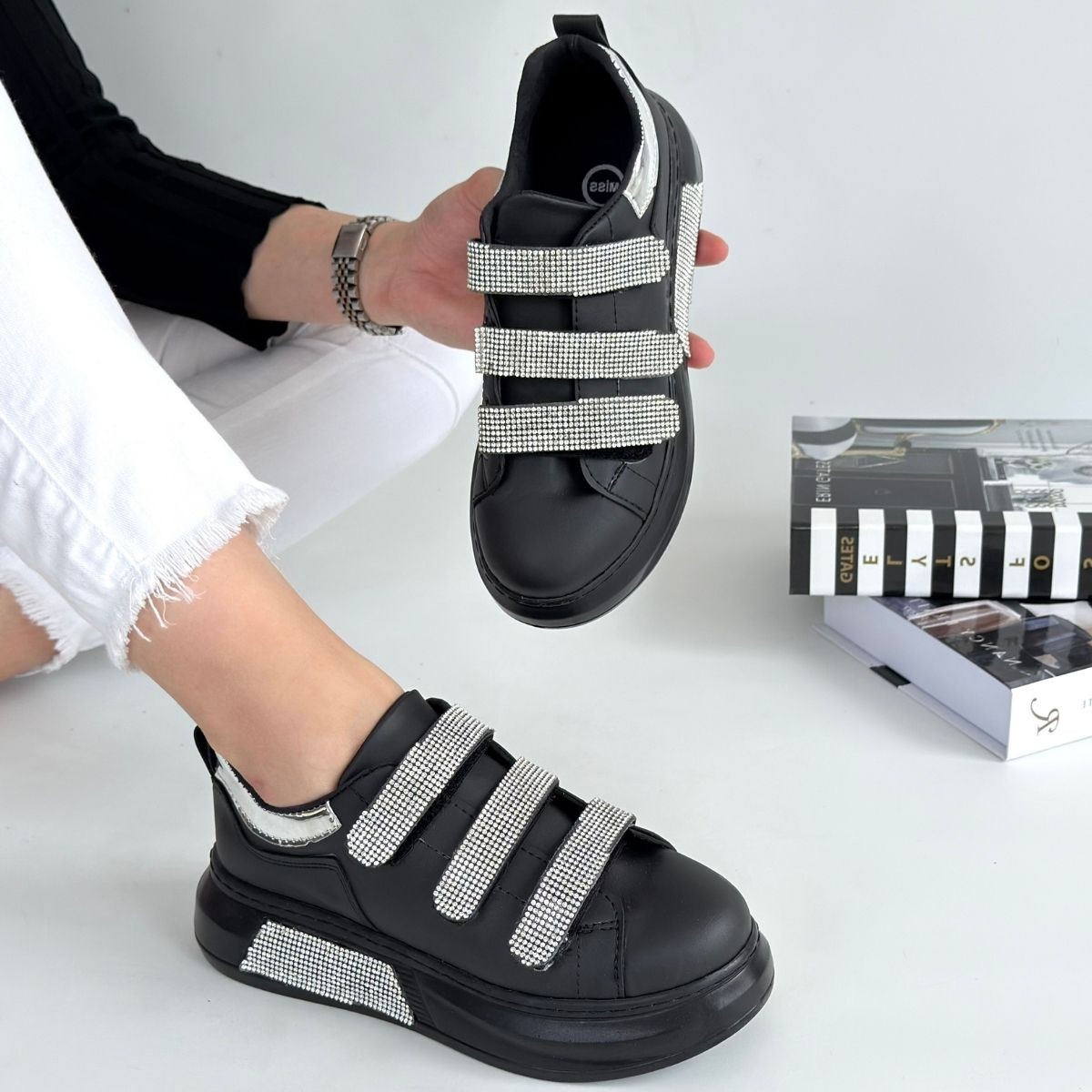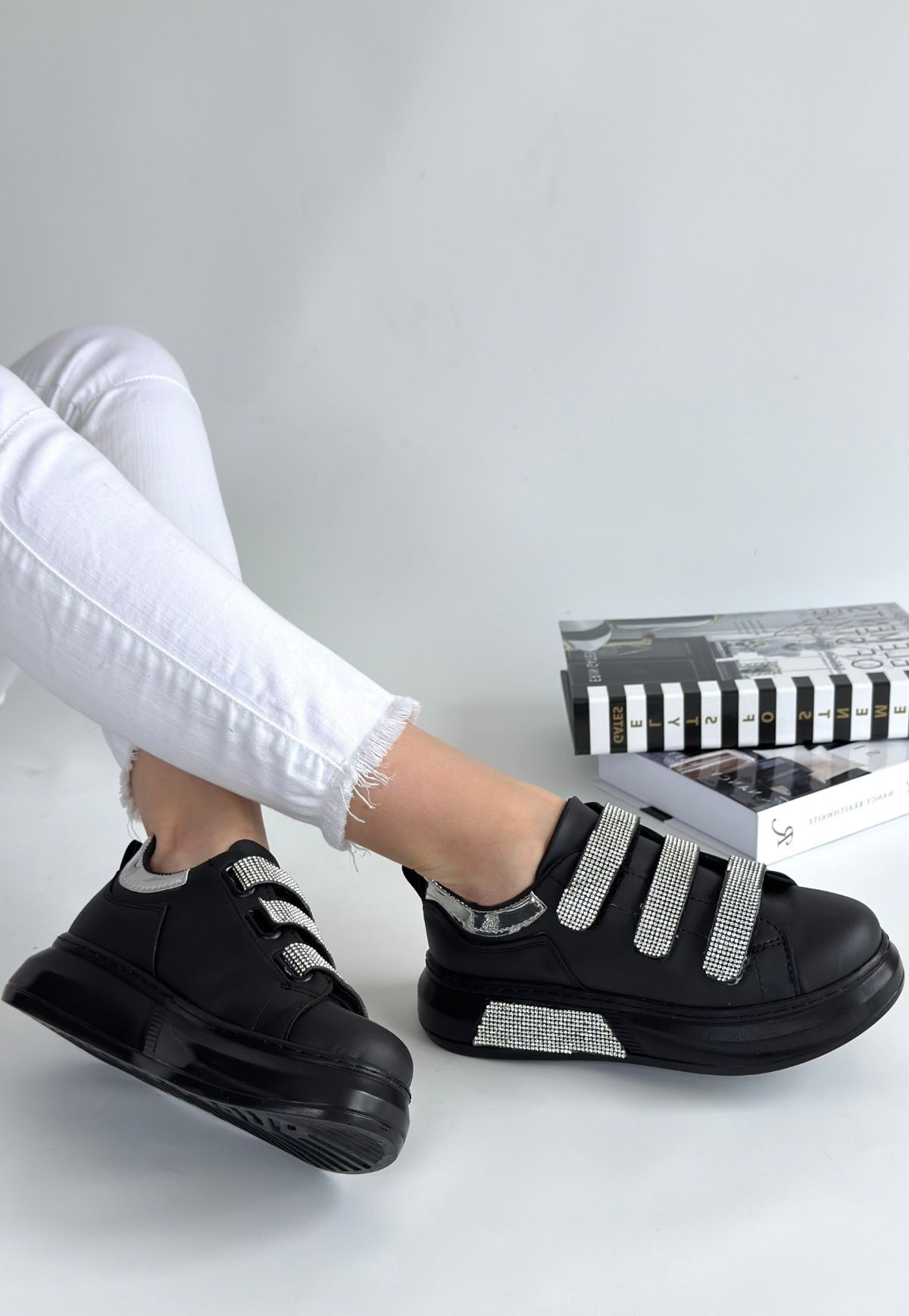 Siyah Cilt Cırt Cırtlı Spor Ayakkabı