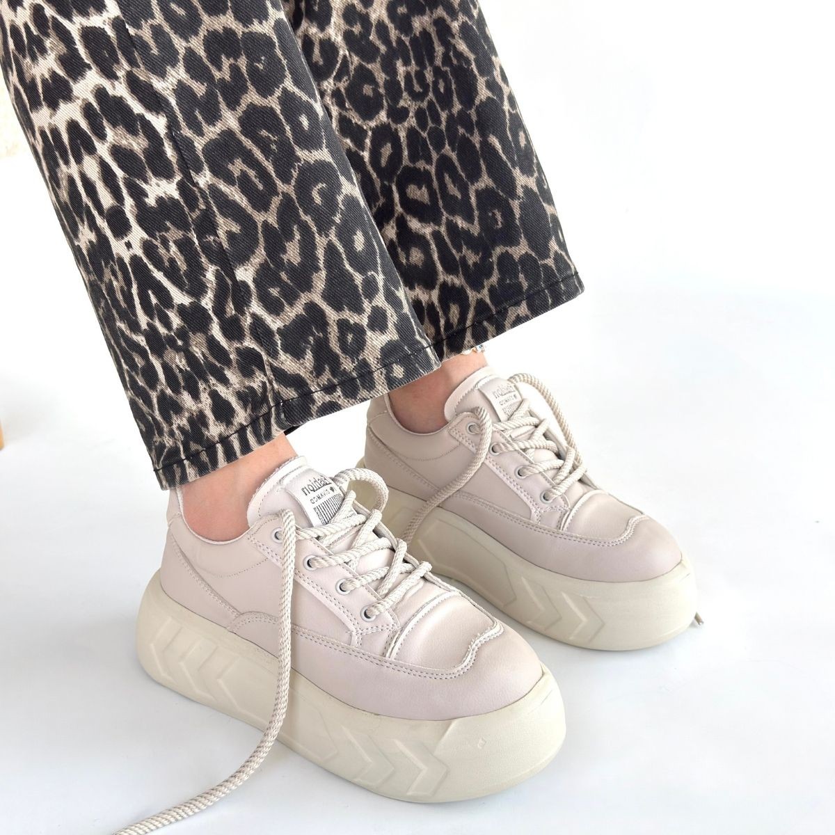 Bej Cilt Bağcıklı Spor Ayakkabı