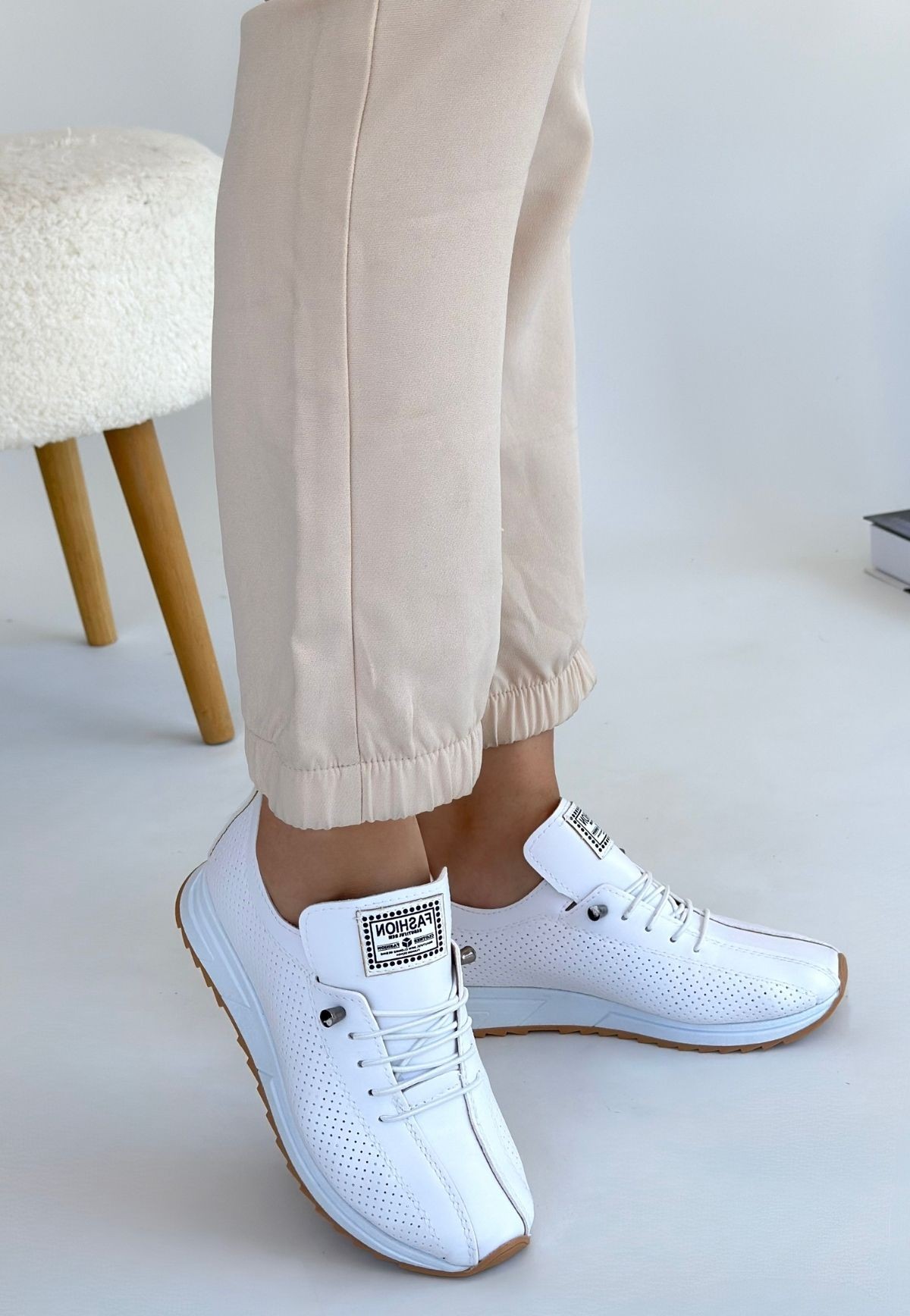 Beyaz Cilt Bağcıklı Spor Ayakkabı