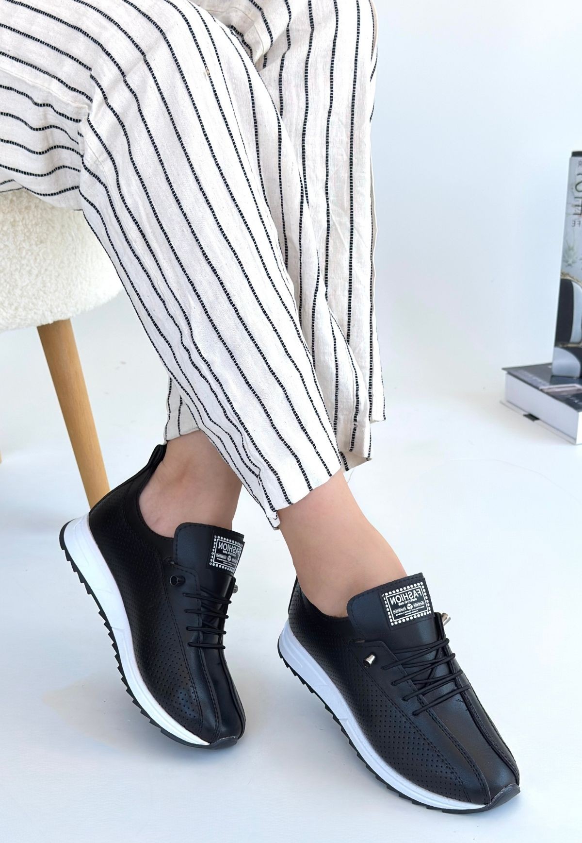 Siyah Cilt Bağcıklı Spor Ayakkabı
