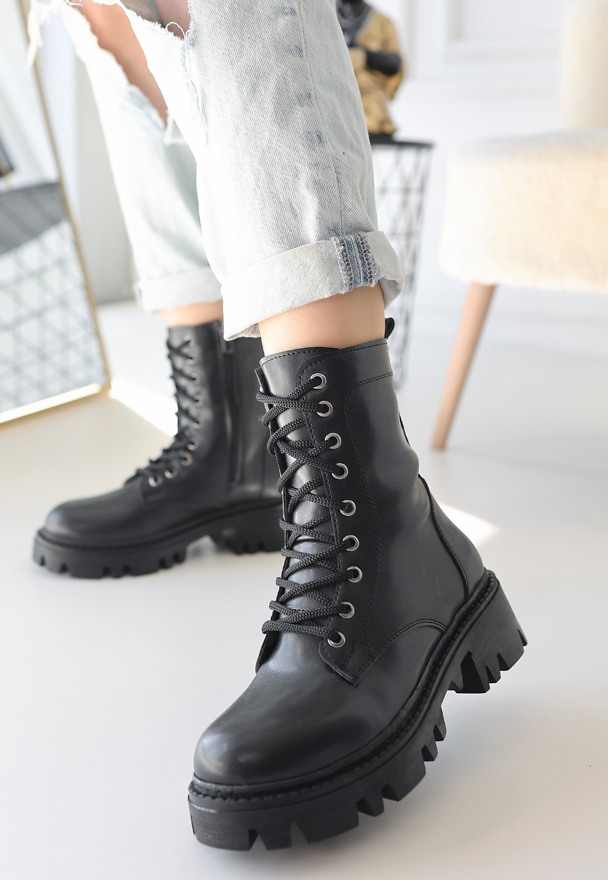 Siyah Cilt Bağcıklı Bot