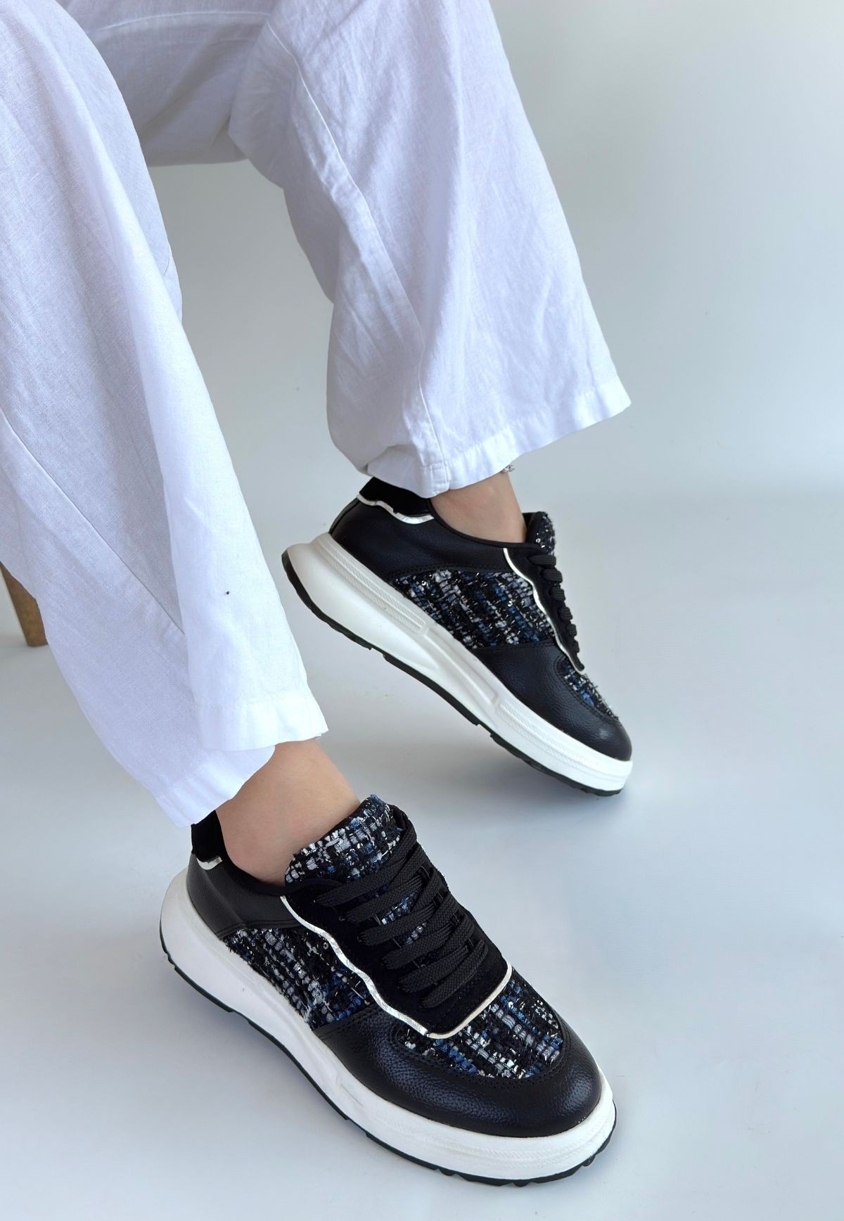 Siyah Cilt Bağcıklı Spor Ayakkabı