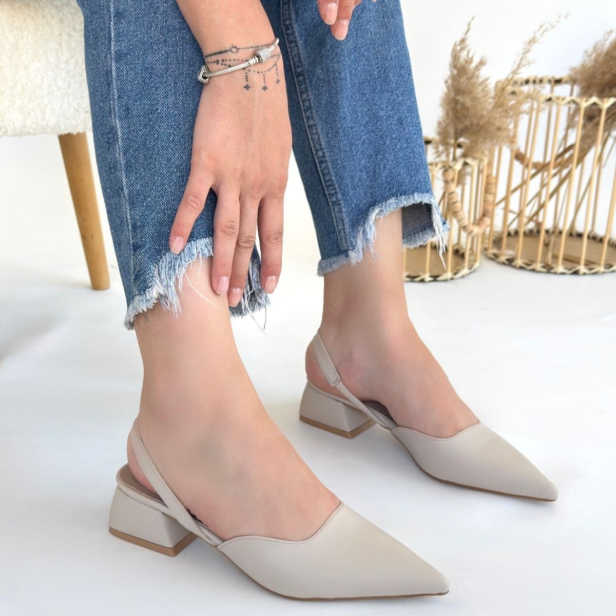 Bej Cilt Topuklu Ayakkabı