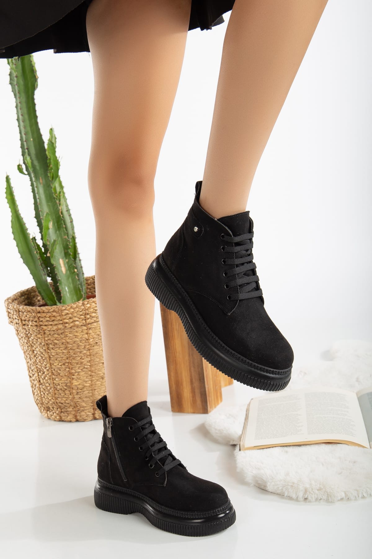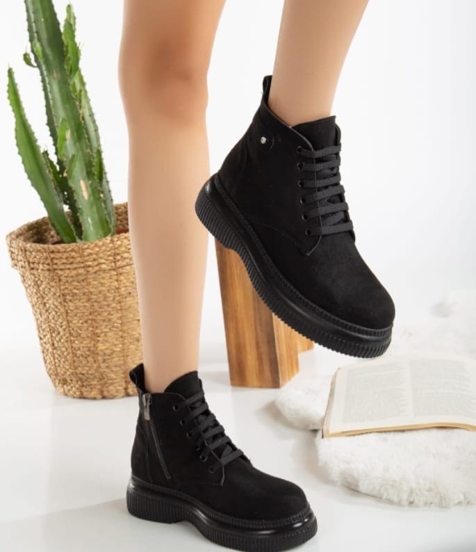 Siyah Süet Bağcıklı Bot