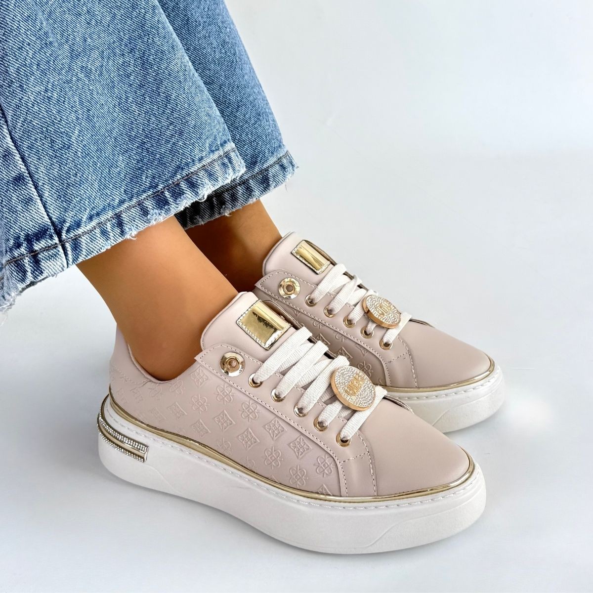 Bej Cilt Bağcıklı Spor Ayakkabı