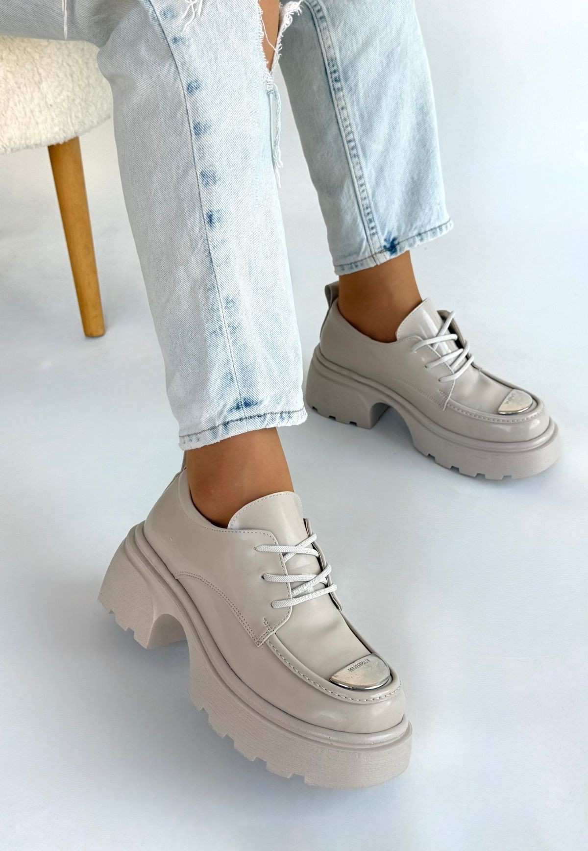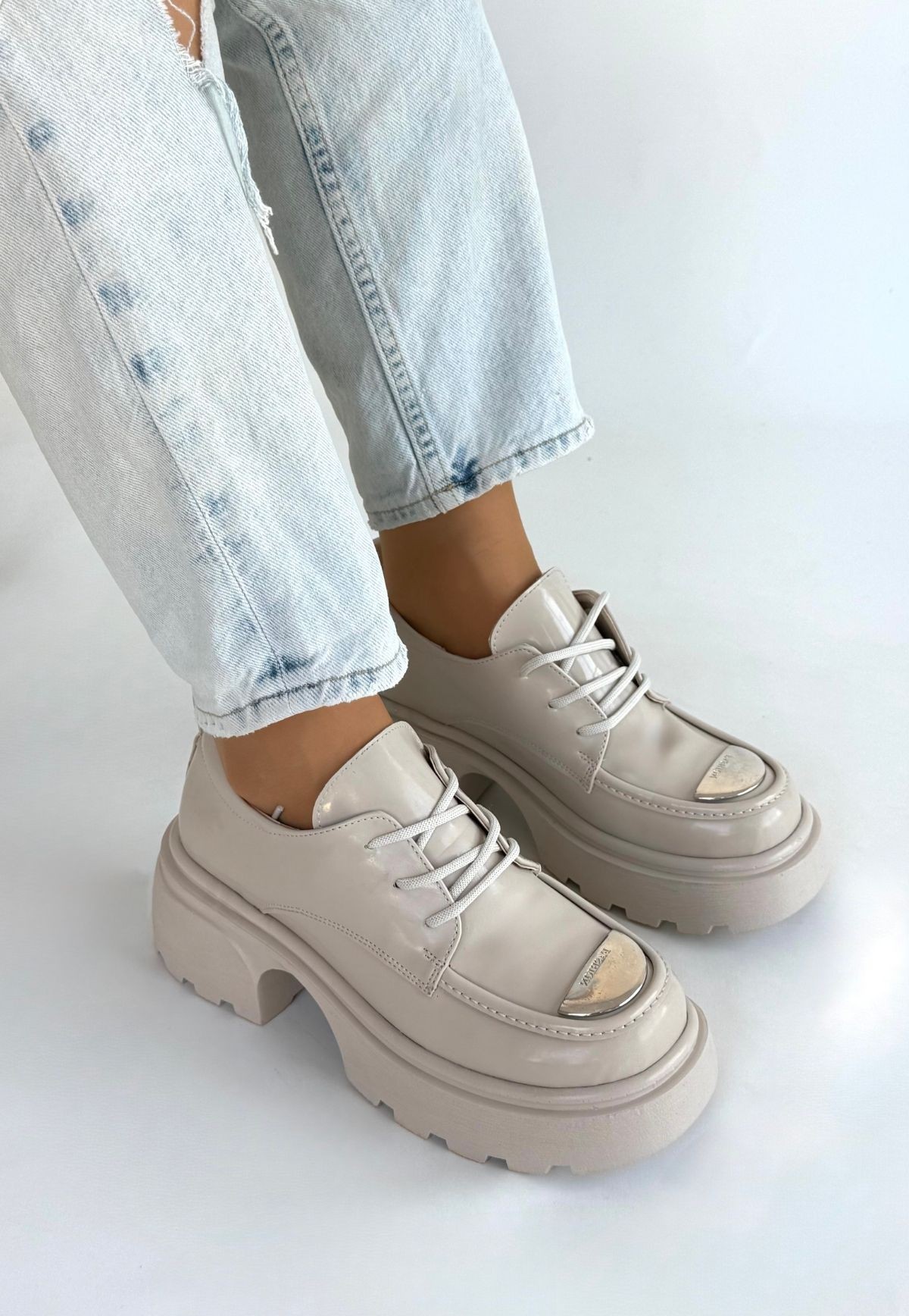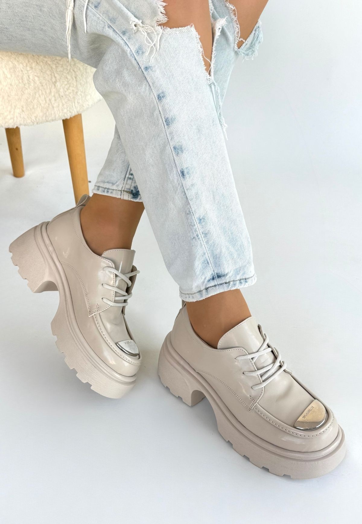 Bej Rugan Dolgu Topuk Oxford Ayakkabı