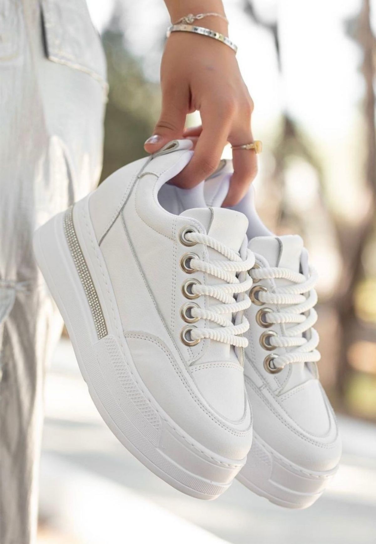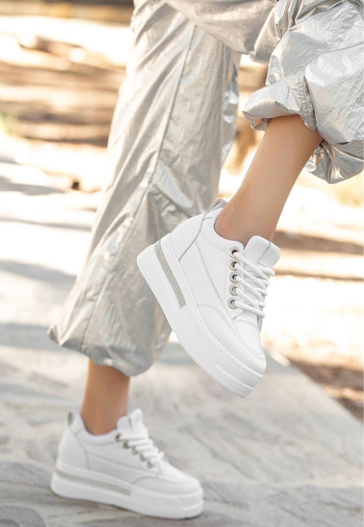 Beyaz Cilt Bağcıklı Spor Ayakkabı