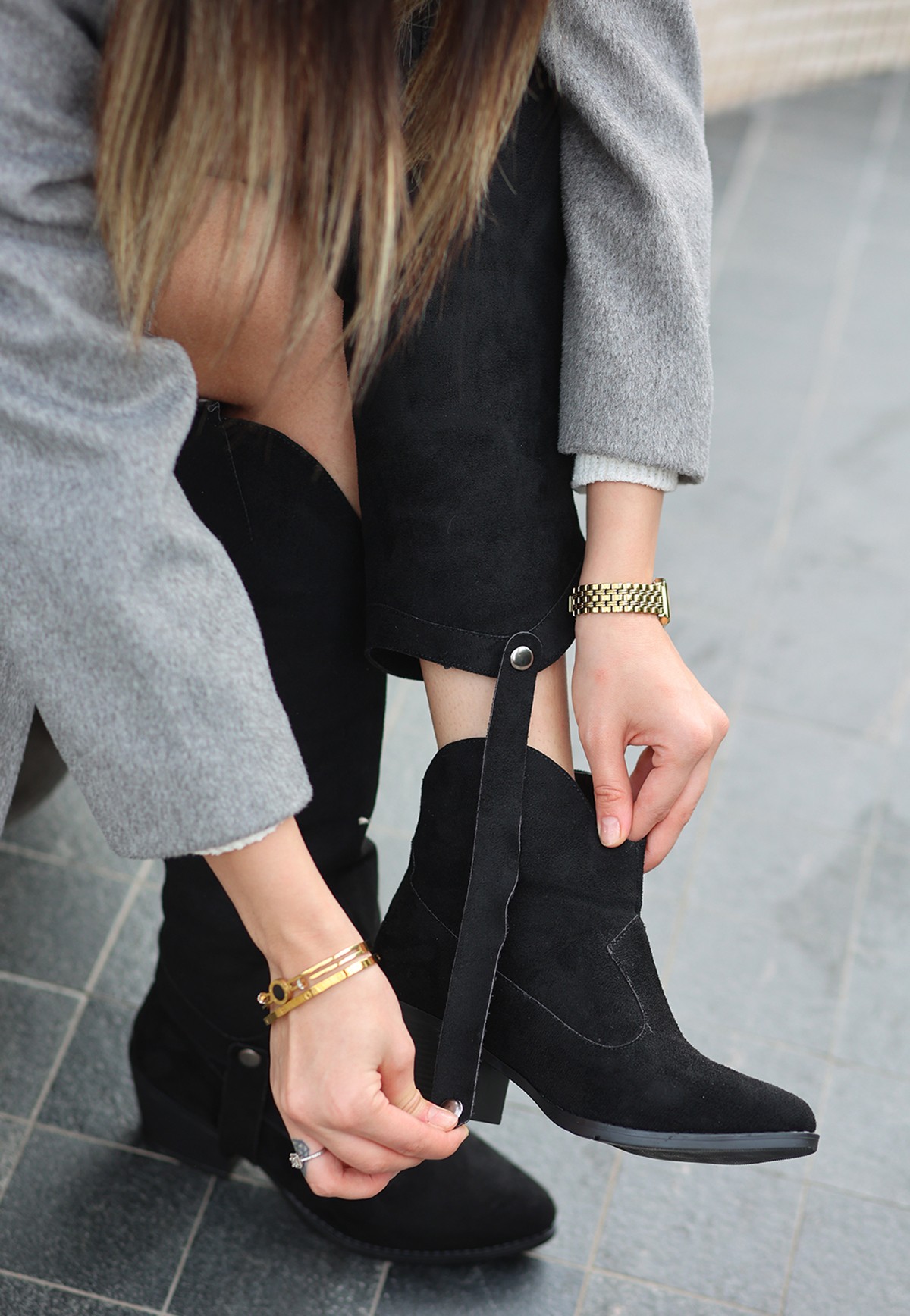 Siyah Süet Tak Çıkar Topuklu Bot Ve Çizme