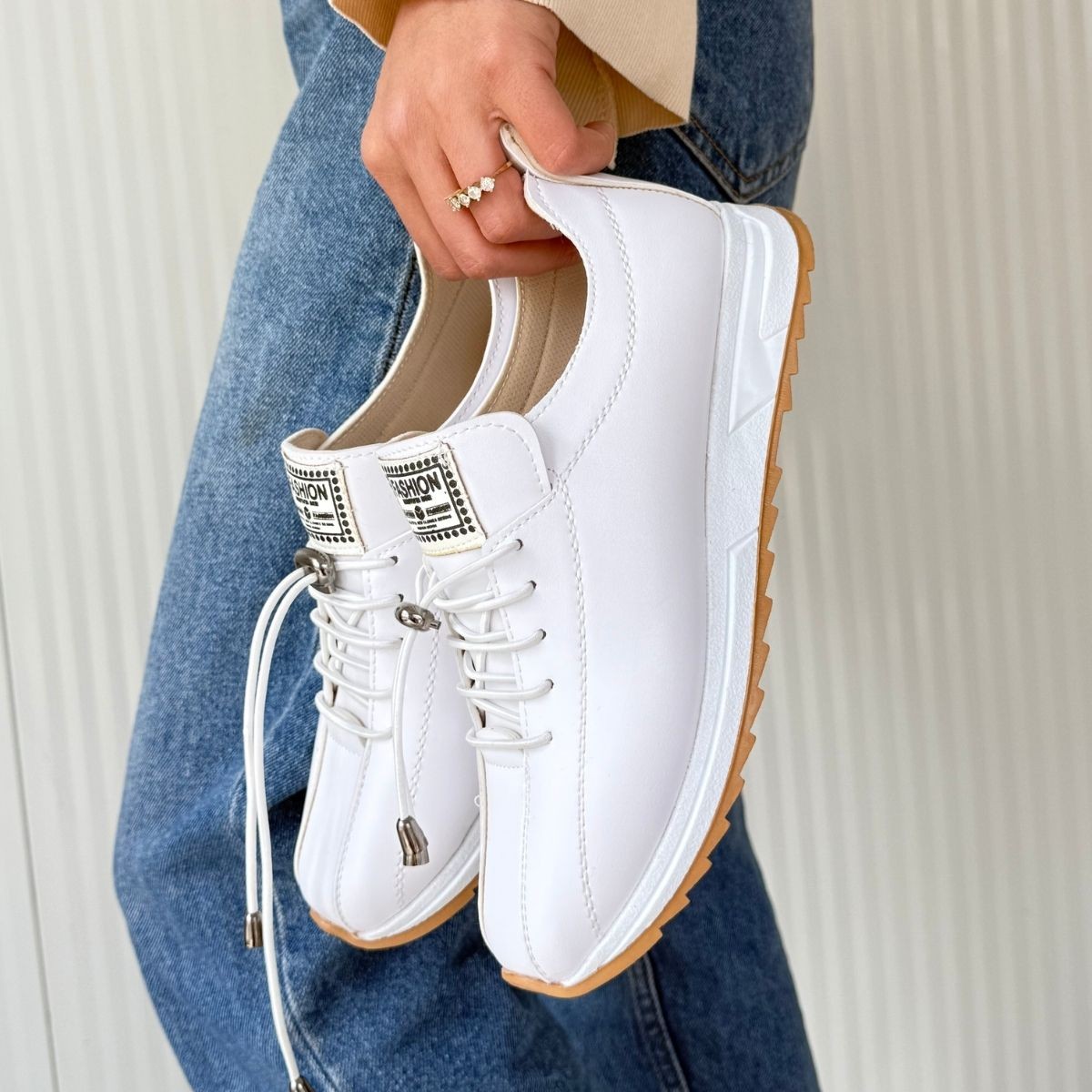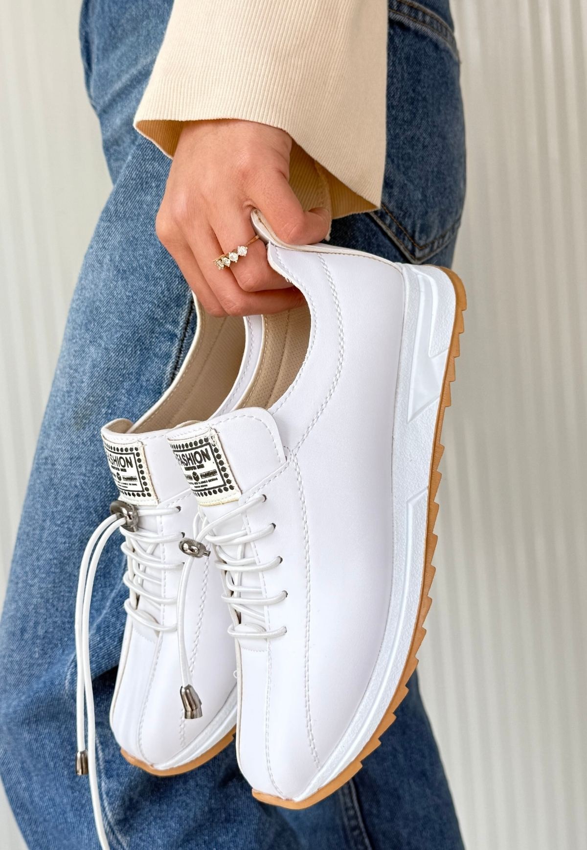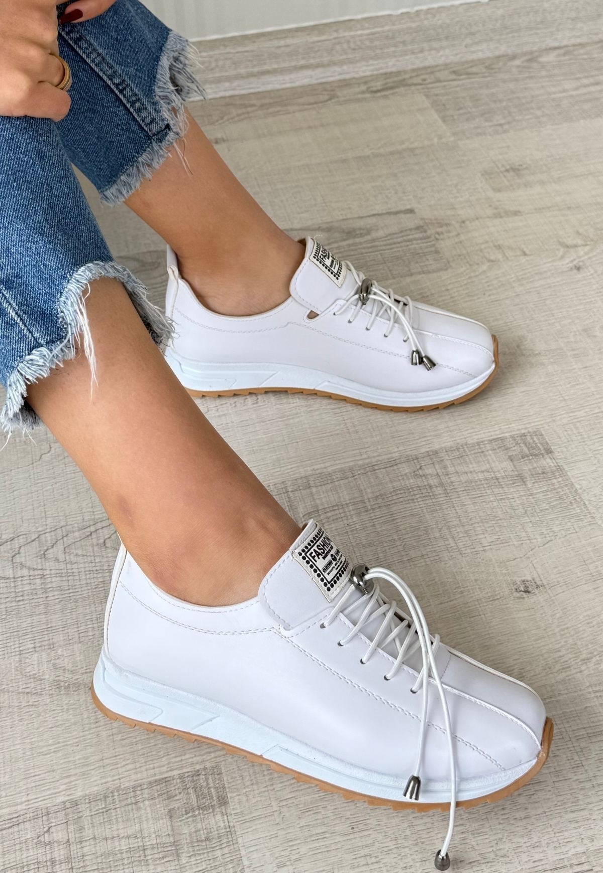 Beyaz Cilt Bağcıklı Spor Ayakkabı