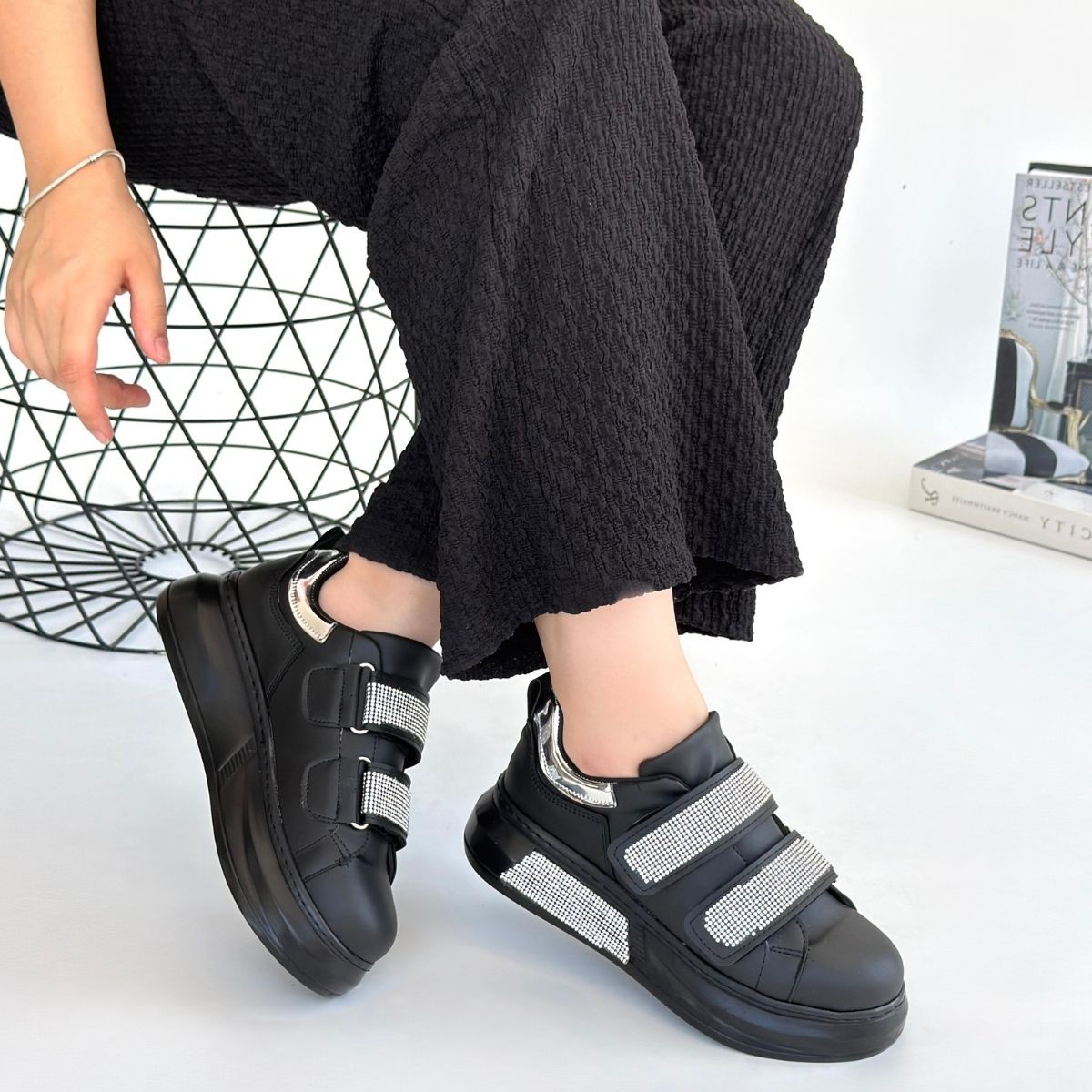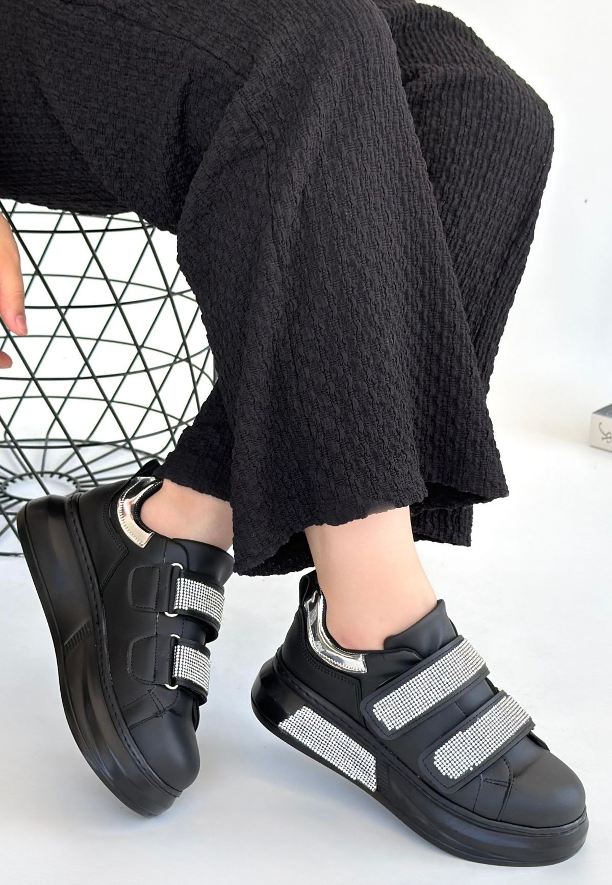 Siyah Cilt Cırt Cırtlı Spor Ayakkabı