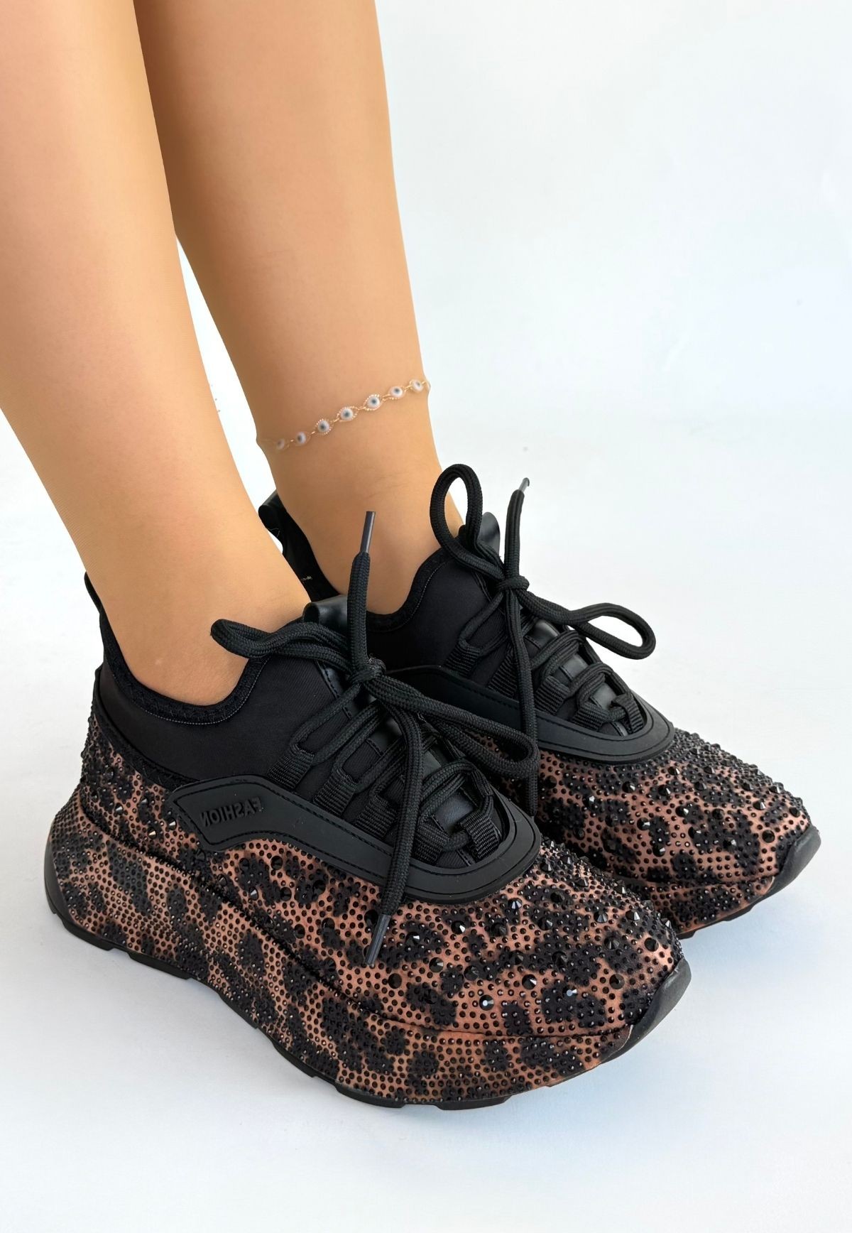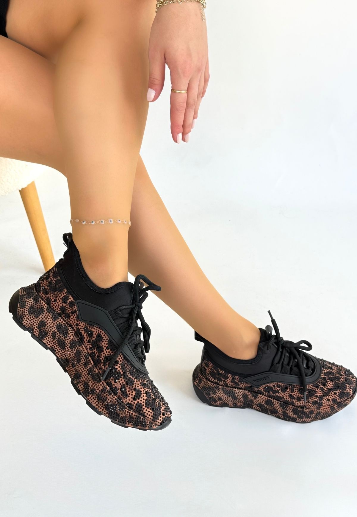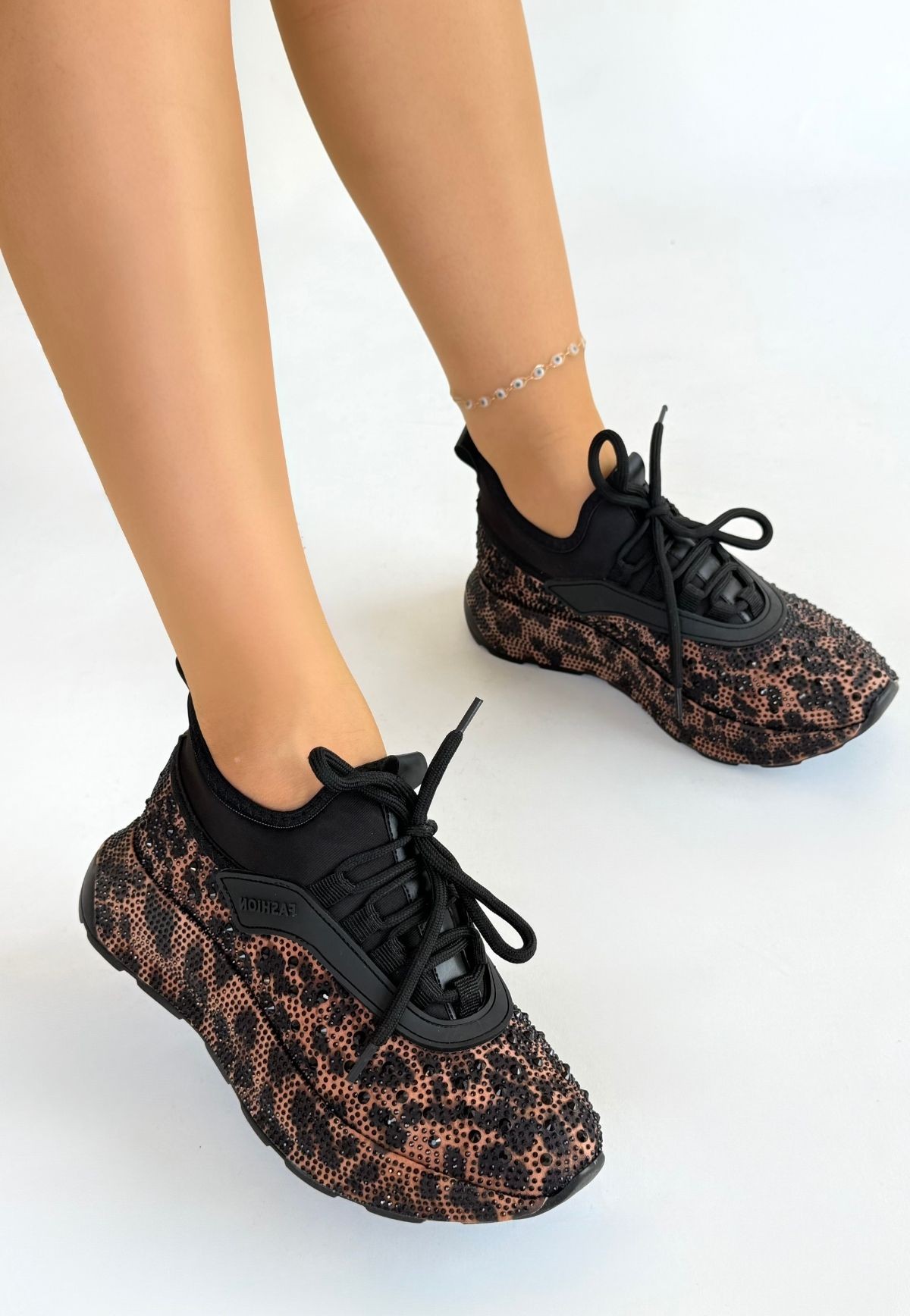 Kahverengi Cilt Boncuk İşlemeli Spor Ayakkabı