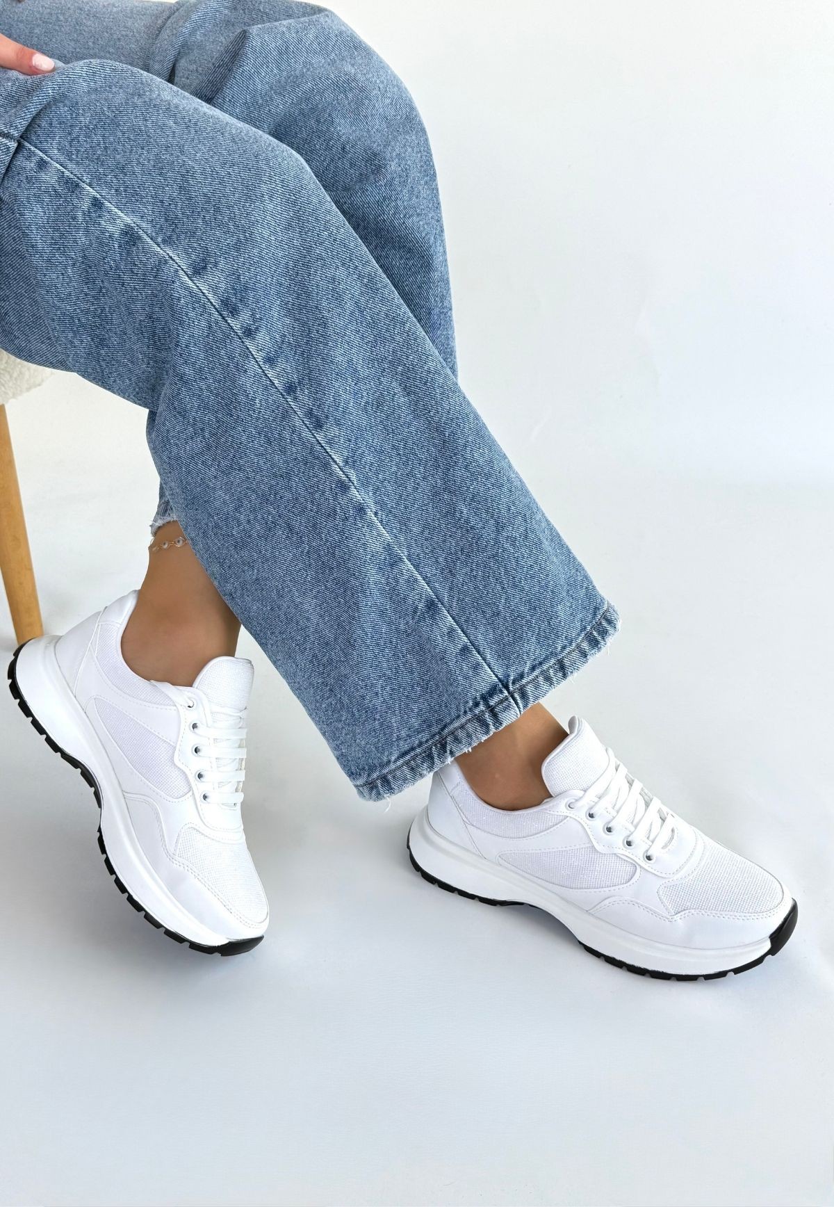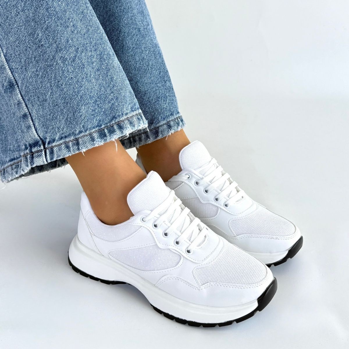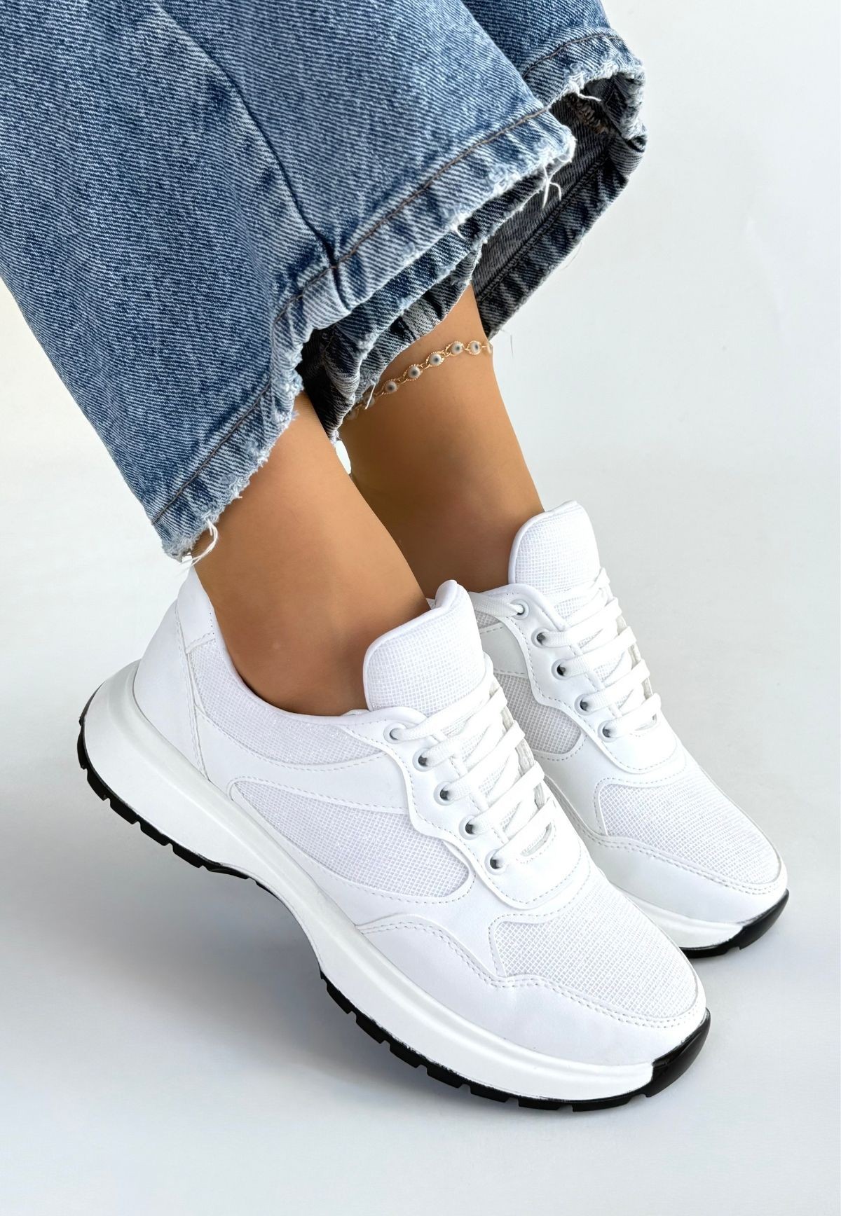 Beyaz Cilt Bağcıklı Spor Ayakkabı