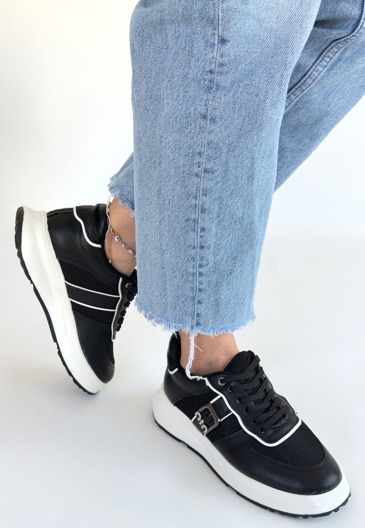 Siyah Cilt Bağcıklı Spor Ayakkabı