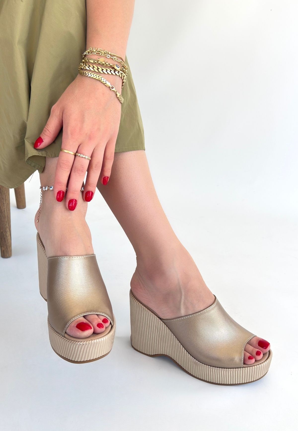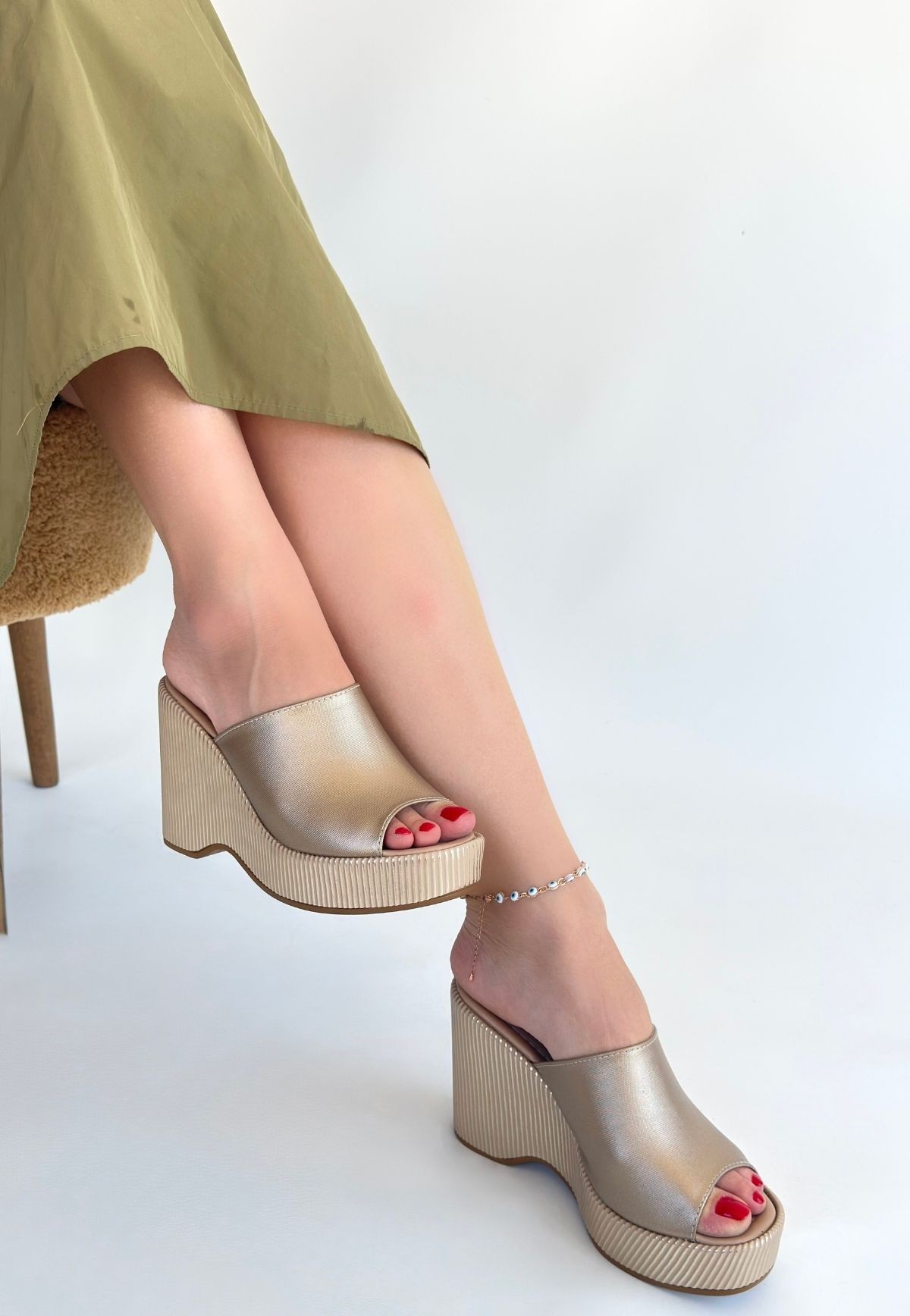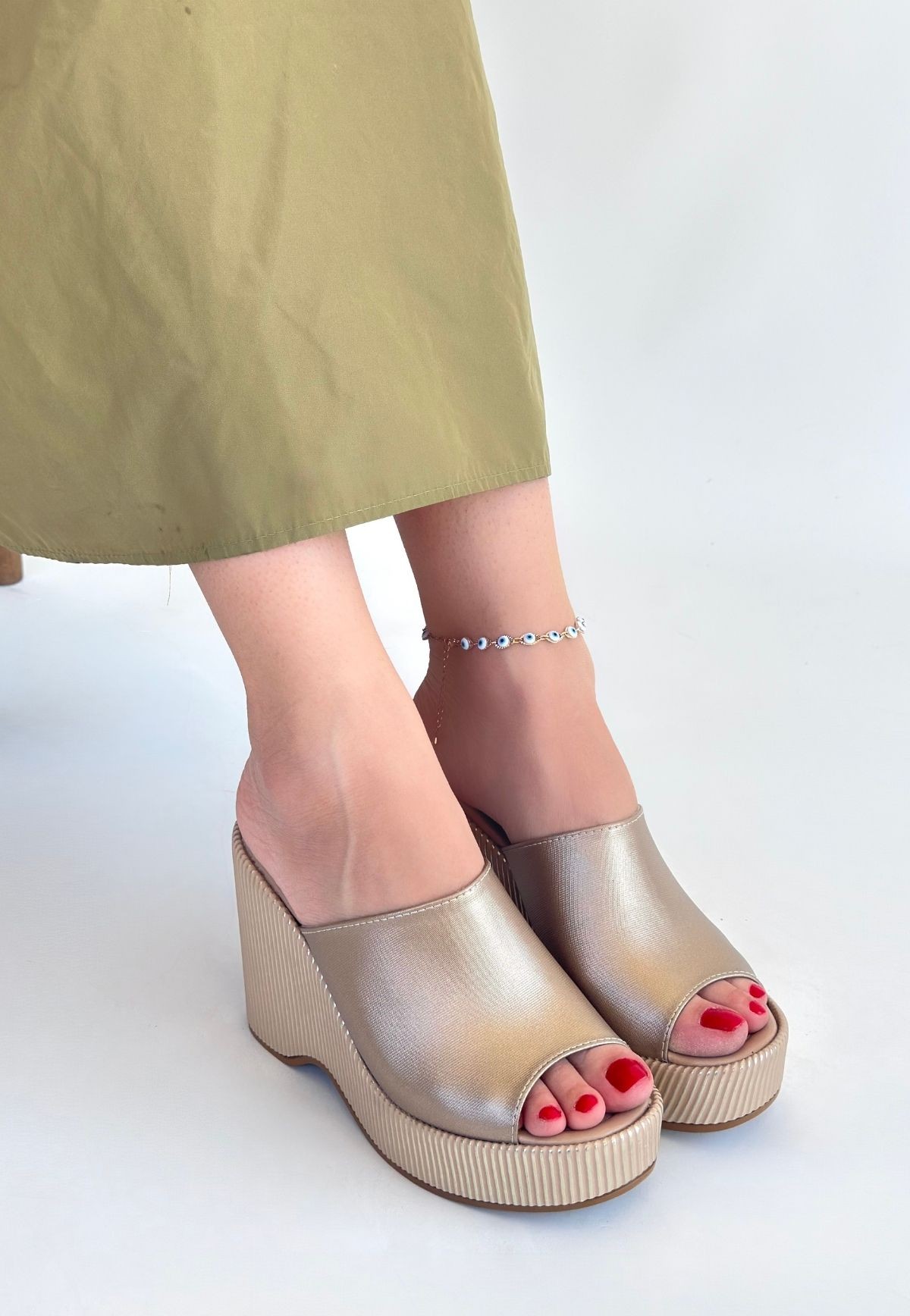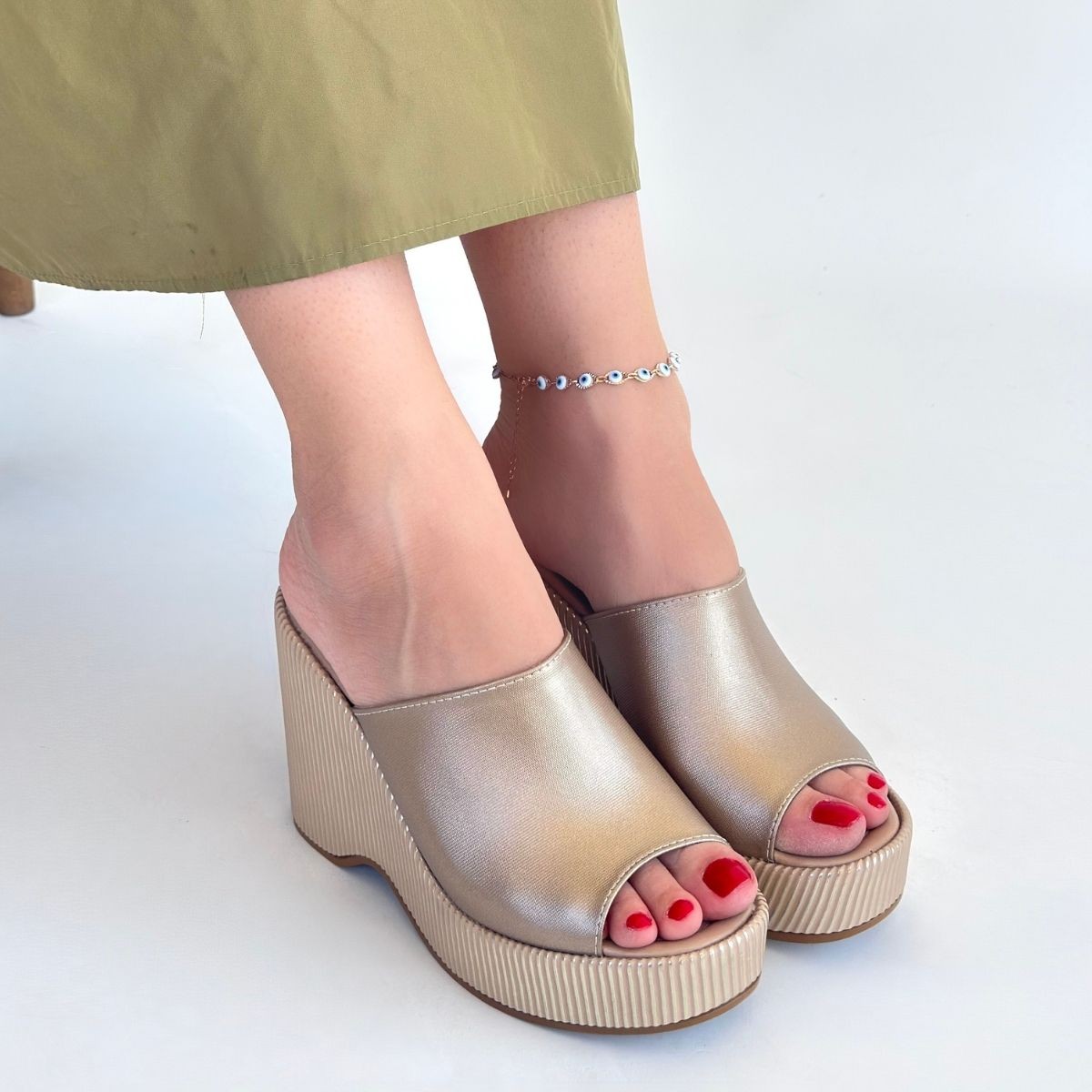 Bej Cilt Dolgu Topuk Terlik