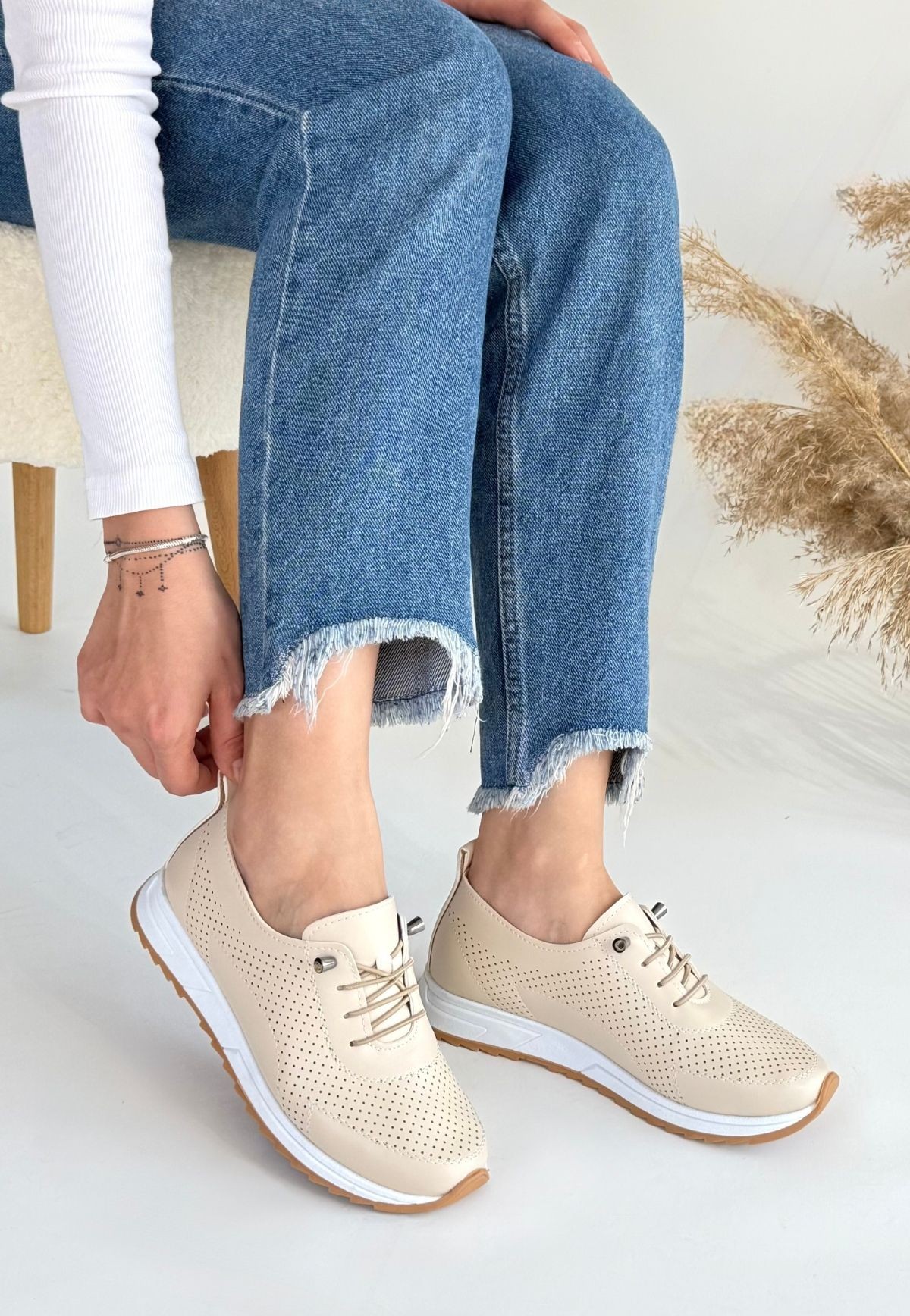 Bej Cilt Bağcıklı Spor Ayakkabı