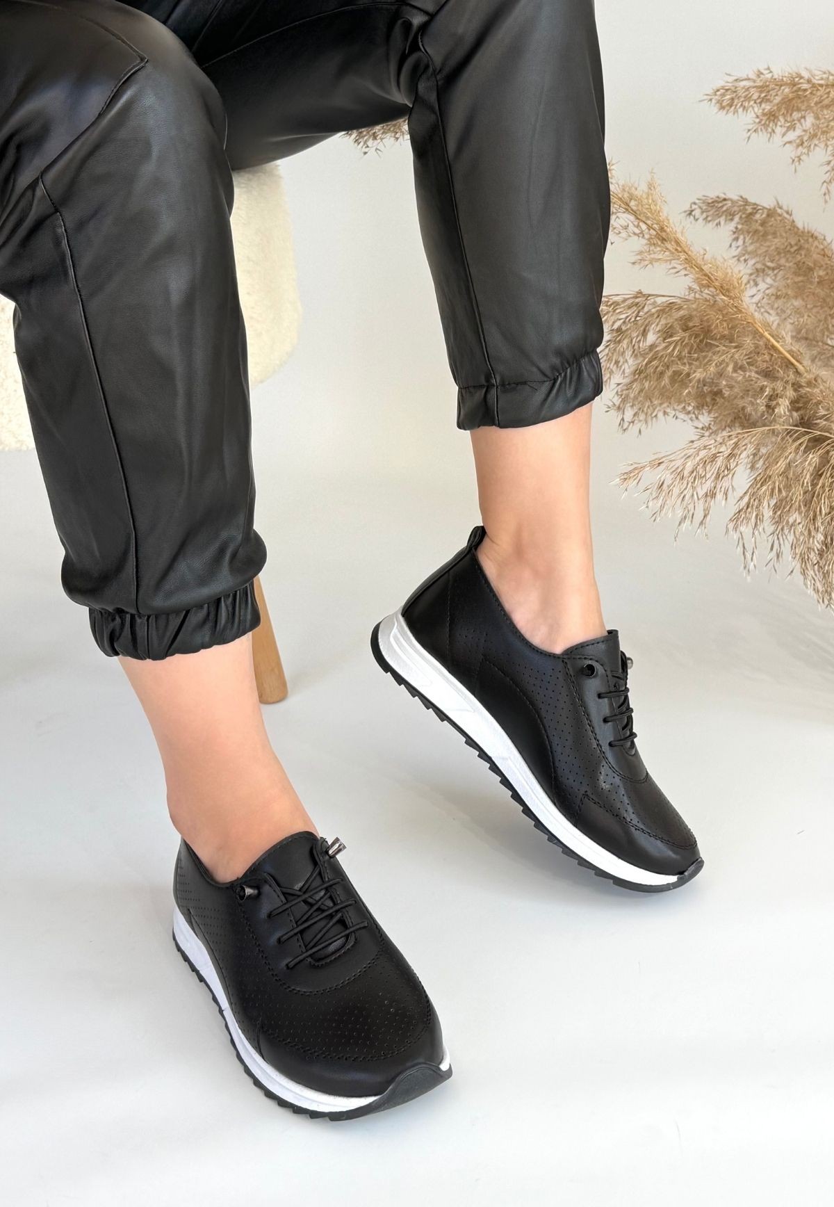 Siyah Cilt Bağcıklı Spor Ayakkabı