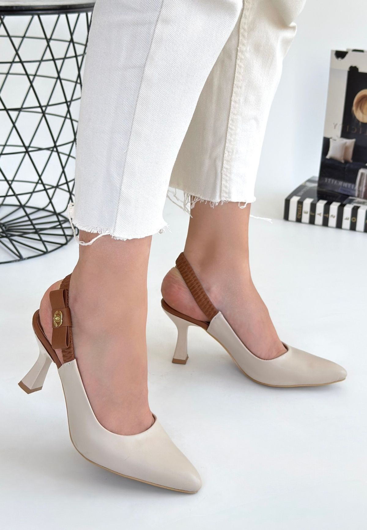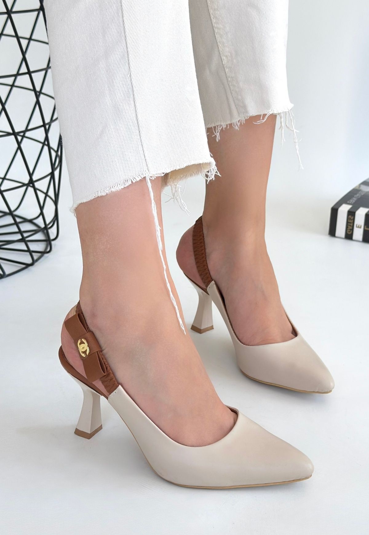 Bej Cilt Topuklu Ayakkabı