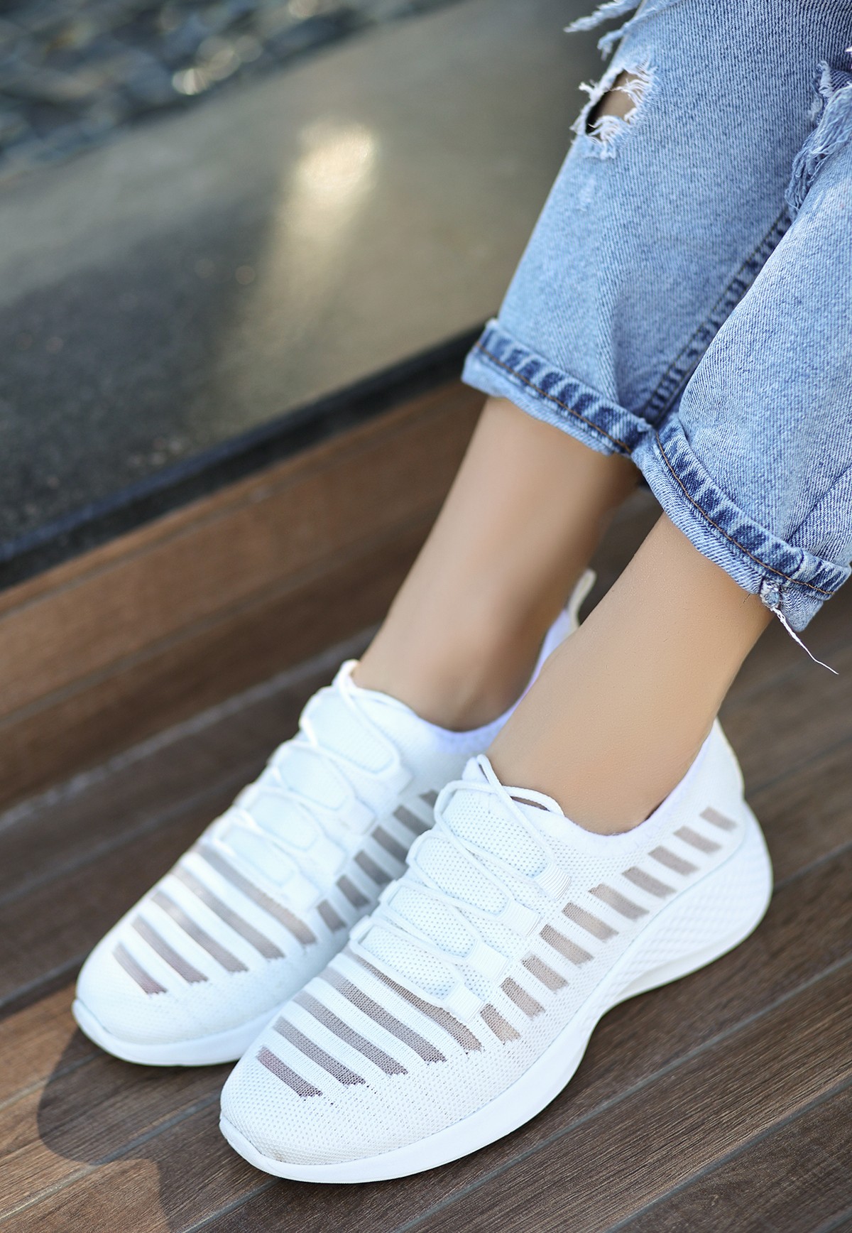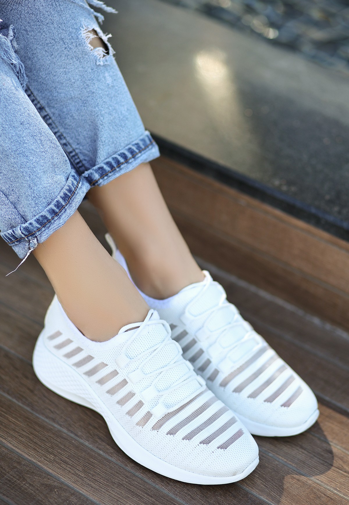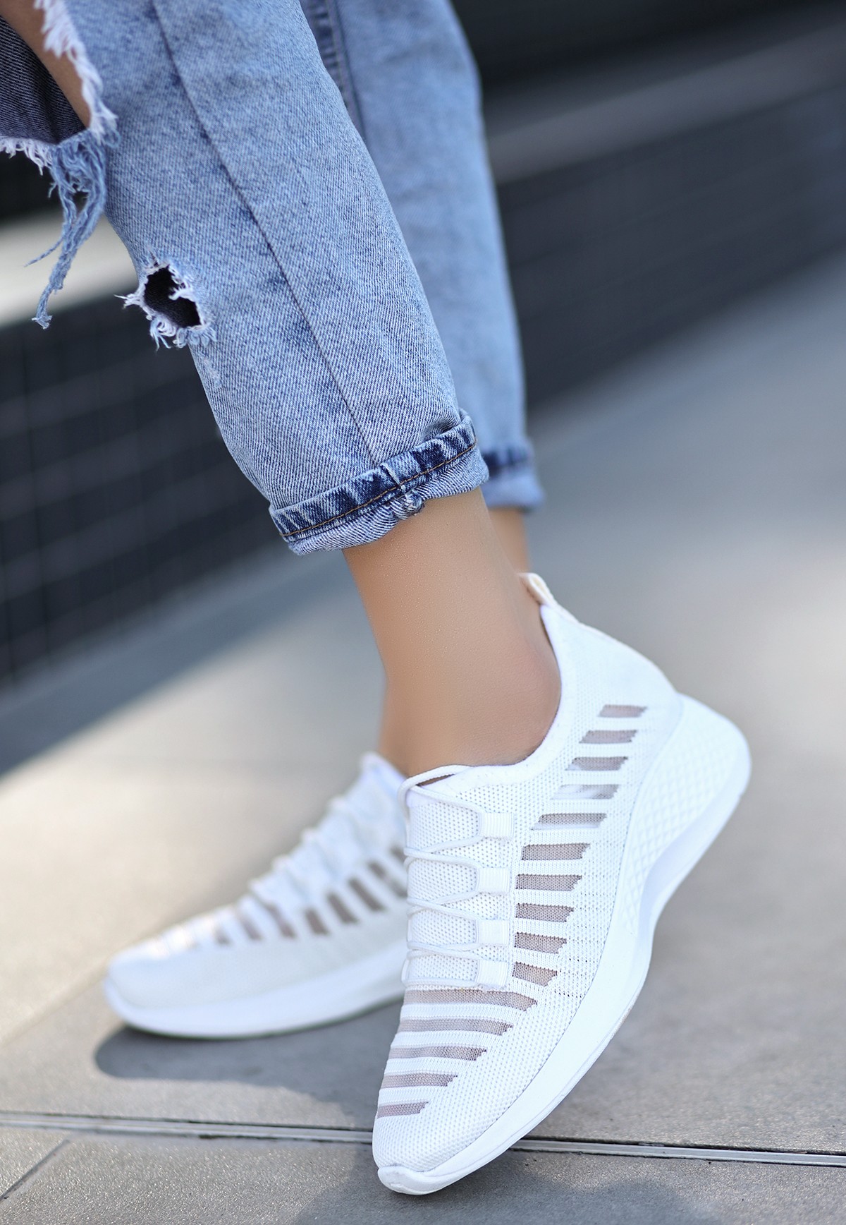 Beyaz Triko Spor Ayakkabı