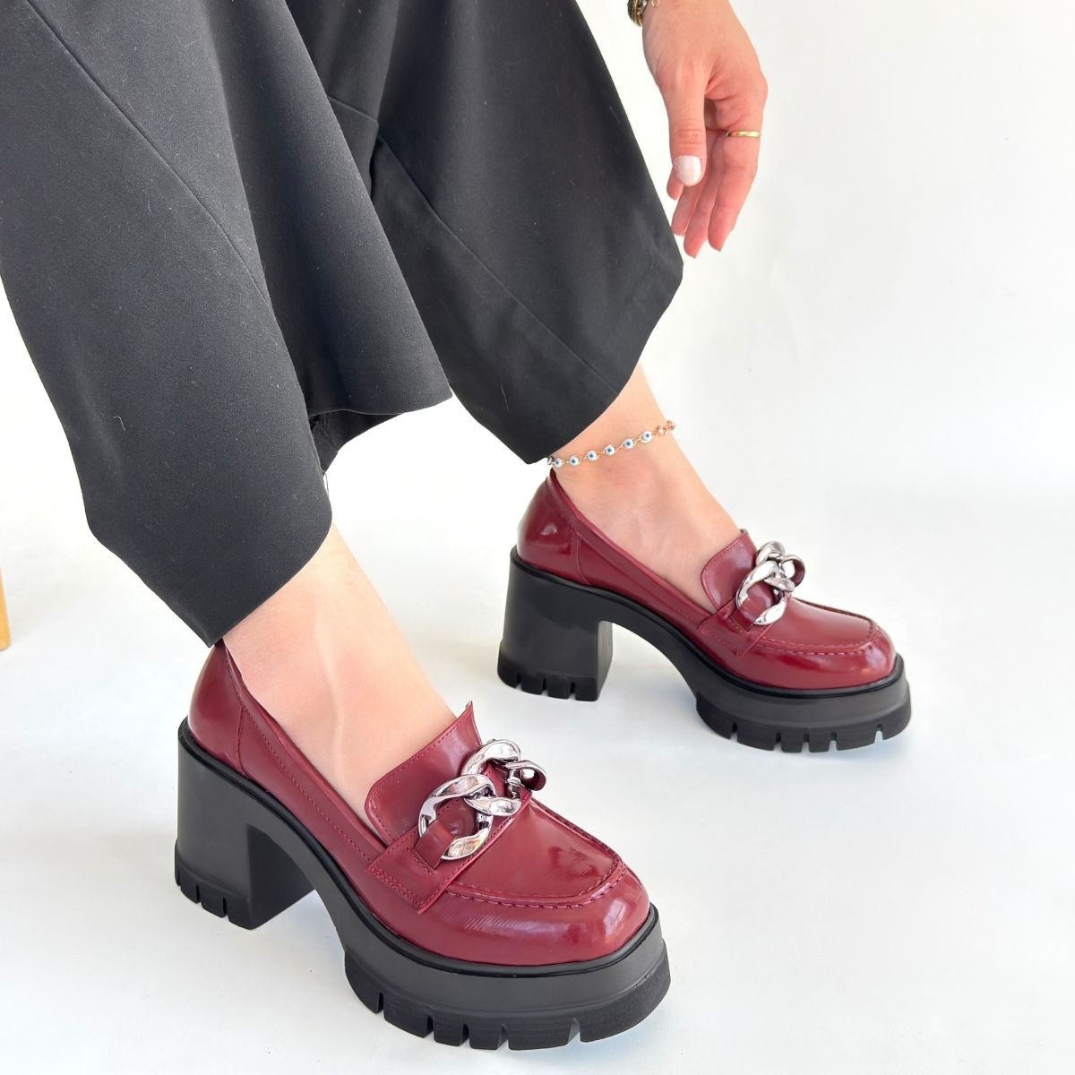 Bordo Rugan Doldu Topuk Ayakkabı