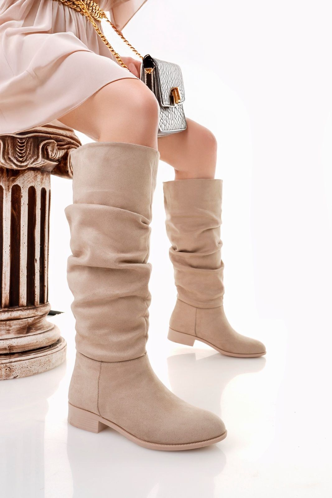 Bej Süet Körüklü Çizme